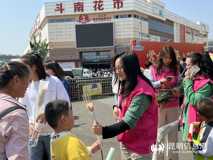 妇女节当天,斗南花卉产业园区管委会还向前来游玩的市民游客赠送玫瑰、康乃馨、向日葵等鲜切花2000余枝,让广大市民游客感受亚洲花都的浪漫。演艺团队还在斗南花市鲜花大道为市民游客献上巡游表演。