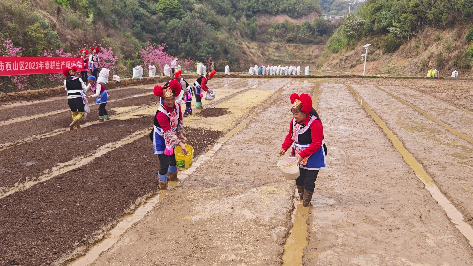 核桃箐村民播种水稻