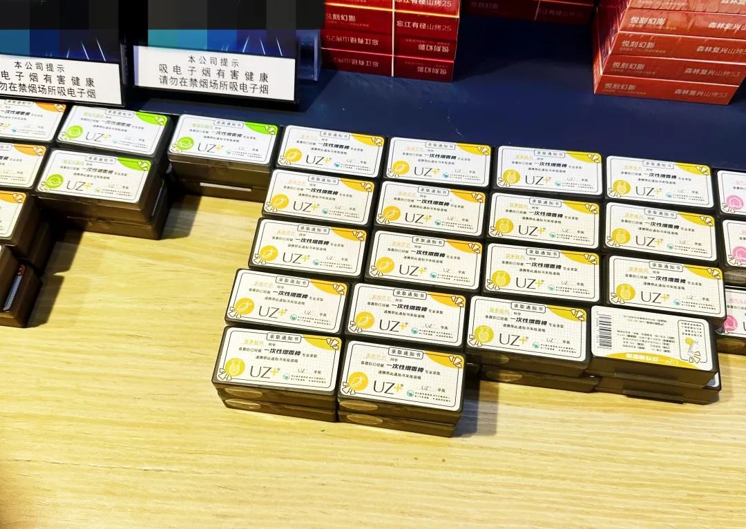 这些电子烟产品外观花哨、口味丰富,“桃气乌龙”“多汁葡萄”“菠萝旋风”一应俱全。虽是一次性使用且价格在百元上下,个别口味依然广受喜爱,甚至卖断货。这些电子烟的外包装普遍没有中文标识,不标注生产厂商、厂址、雾化物成分清单、生产日期及有效期等关键信息,产品质量不明,安全隐患突出。