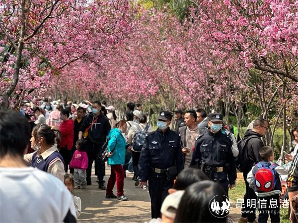 春风渐暖,繁花正灿。昆明市公安局五华分局华山东路派出所结合辖区圆通山动物园樱花节期间人流量大特点,全警动员、全力以赴,锚定“降警情、控发案、多破案、勇争先”大竞赛目标,织密“队伍管理、打防管控、为民服务”三张网,以民辅警的“辛苦指数”提升群众的“安全指数”。2023年圆通山樱花节开幕以来,派出所扒窃警情实现“零接报”,刑事、治安警情同比下降80%、40%,连续三年持续下降,警情防控取得明显成效。