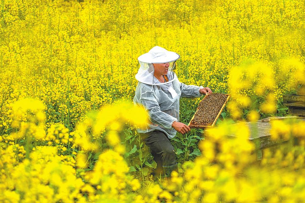 文山加快打造粤港澳大湾区“菜篮子”,新建高标准农田20.15万亩,发展高端稻谷72.24万亩、绿色有机蔬菜87.49万亩、道地药材92万多亩、辣椒168.87万亩、肉牛存栏13.42万头,广南、丘北新增为全省“一县一业”示范县、特色县,实现农业综合产值1050亿元。图为春季文山油菜花盛放。熊平祥/图