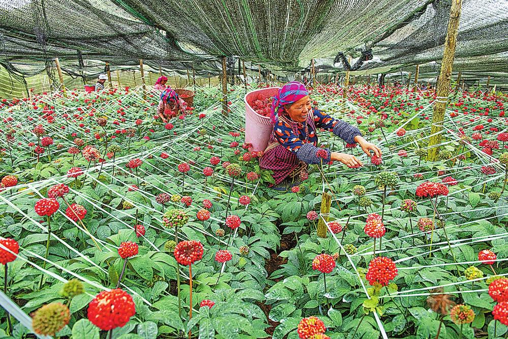 文山加快打造世界“三七之都”,突出与华润集团、云南白药等企业合作,与漳州片仔癀药业合作成立三七联合研究中心,三七集团数字化产地加工中心、金七科技产业园等项目开工,以三七为重点的生物医药产业预计实现综合产值300亿元,增长15%。图为七农采摘红彤彤的三七籽。熊平祥/图