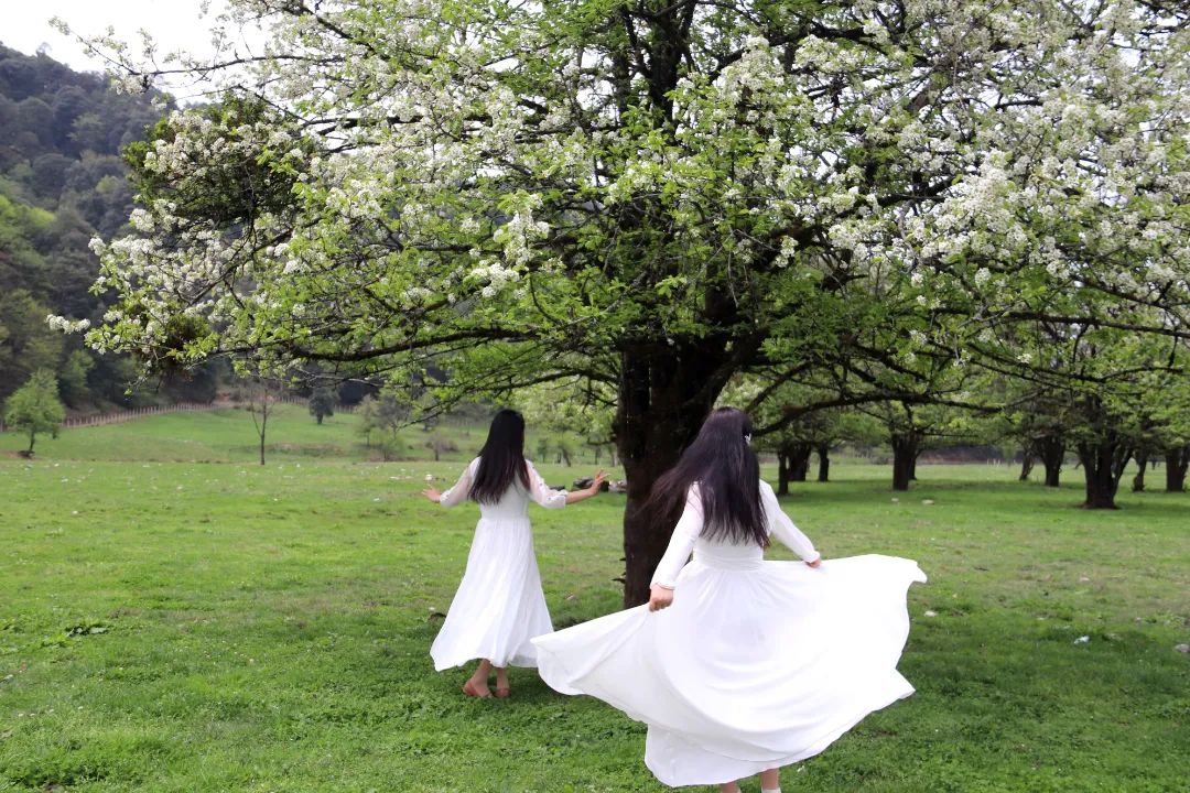 桃花娇嫩、梨花洁白、海棠鲜艳