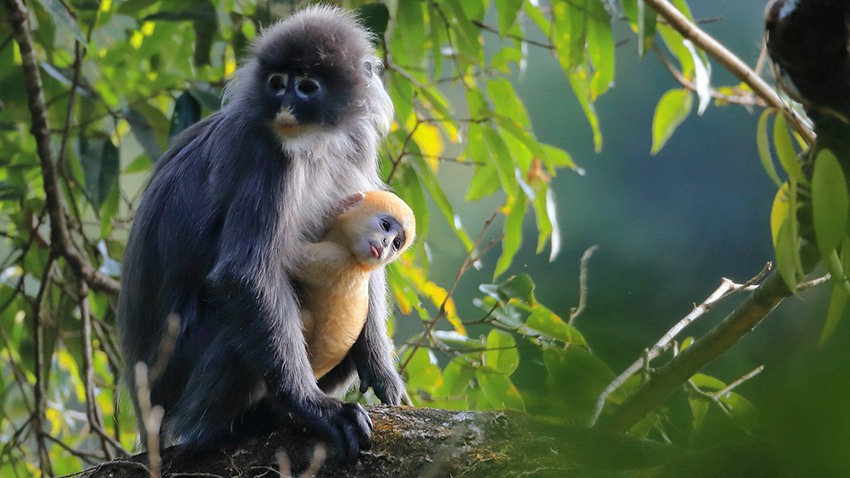 菲氏叶猴是国家一级保护动物,它们不仅外形软萌可爱,还是猴界“乖宝宝”,几乎没有破坏农作物的“不良记录”。