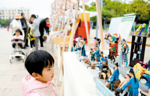 图为“兰茂集市”上栩栩如生的面人吸引小朋友驻足观看。记者赵伟摄
