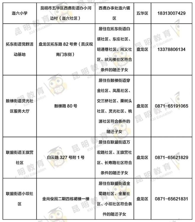 昆明信息港讯 记者上官艳君 3月31日,昆明市义招网发布2023年昆明市主城区外来务工人员随迁子女小学一年级信息确认温馨提醒,主城各区在外来人口集中的区域设立信息确认点,接受外来务工人员随迁子女一年级入学信息确认。