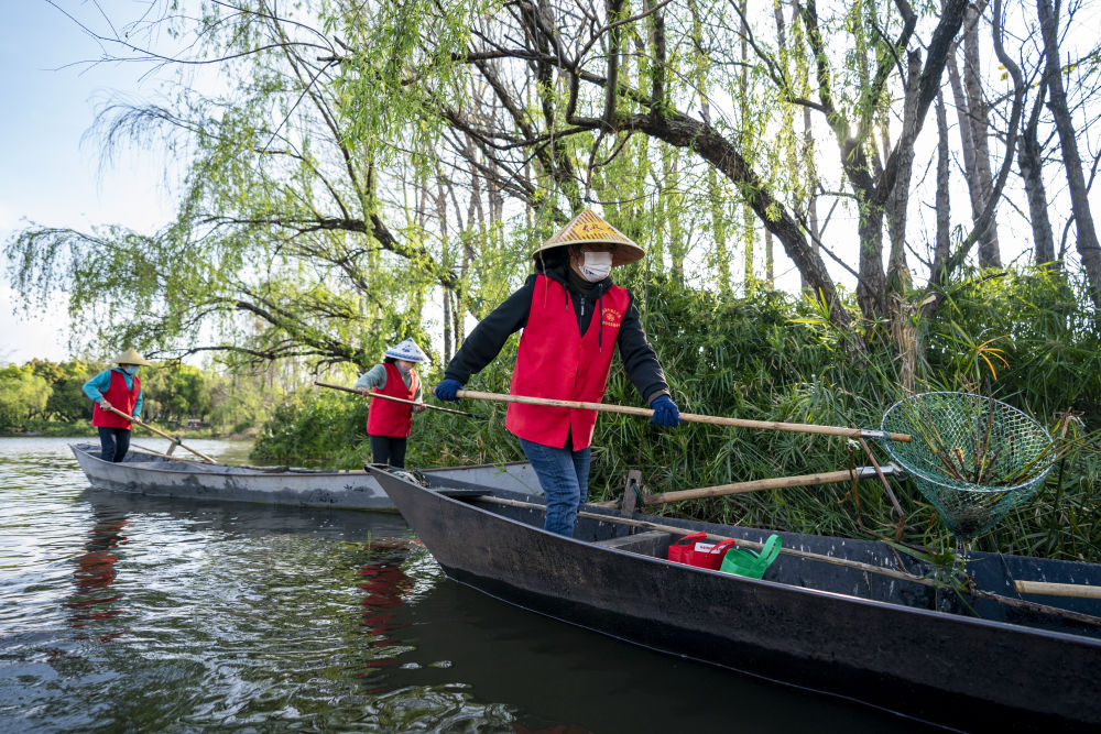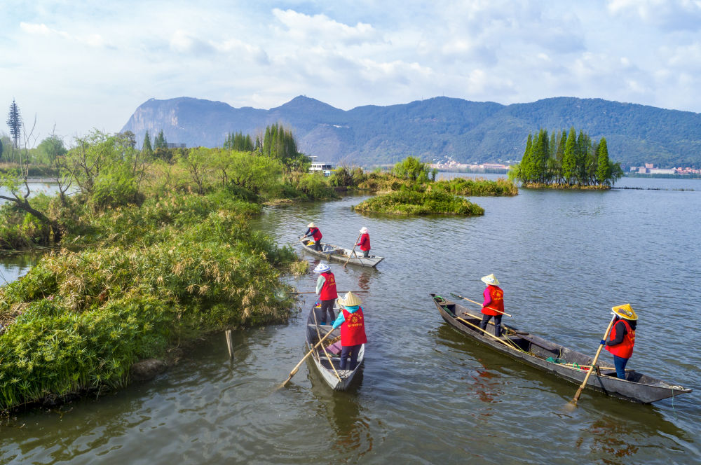 在云南昆明滇池边,活跃着一支由当地妇女组成的巾帼打捞队。她们每天驾驶船只打捞滇池及周边入湖河道、湿地的垃圾、杂草等。这支队伍成立至今已走过30多年岁月。
