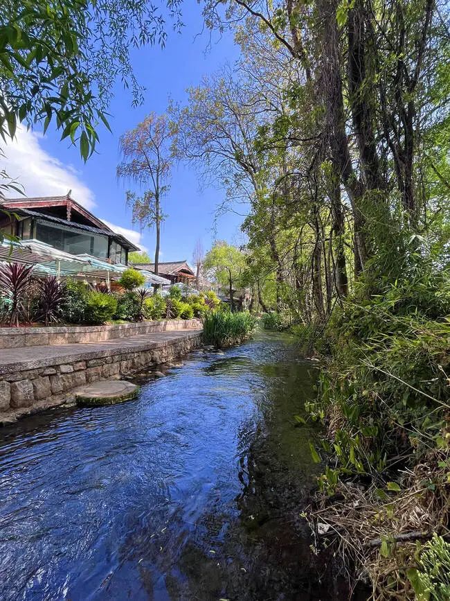 据长江水利委员会长江科学院博士周彦辰介绍,在青龙河段沿岸的建设和设计上,更多地保留了自然生态的景观和束河古镇原有的水文化元素,打造人水和谐的景观,让青龙河段实现“河畅、水清、岸绿、景美”。“我们当时在做设计的时候,就把九鼎龙潭和青龙河比较自然的河流景色、景致,包括一些人文的元素和束河古镇自身所具备的属性融合在一起,做到人水和谐,给游客和居民提供更多亲水亲绿的平台和环境。在整个设计过程中,我们避免过度的人为景观化,更多保留现有的一些水文化要素,包括农田、三眼井这样比较有水文化特色的景观,然后对早期人为建设痕迹比较重的坡岸,我们进行了优化,做成亲水平台、草皮护坡,更好实现人水和谐。”