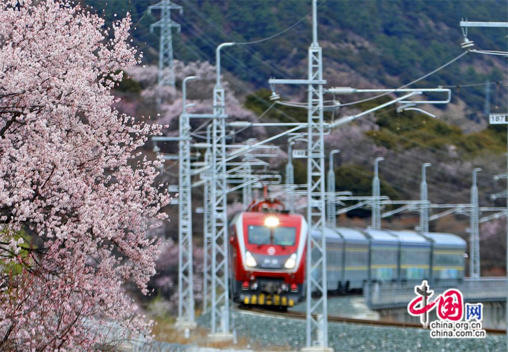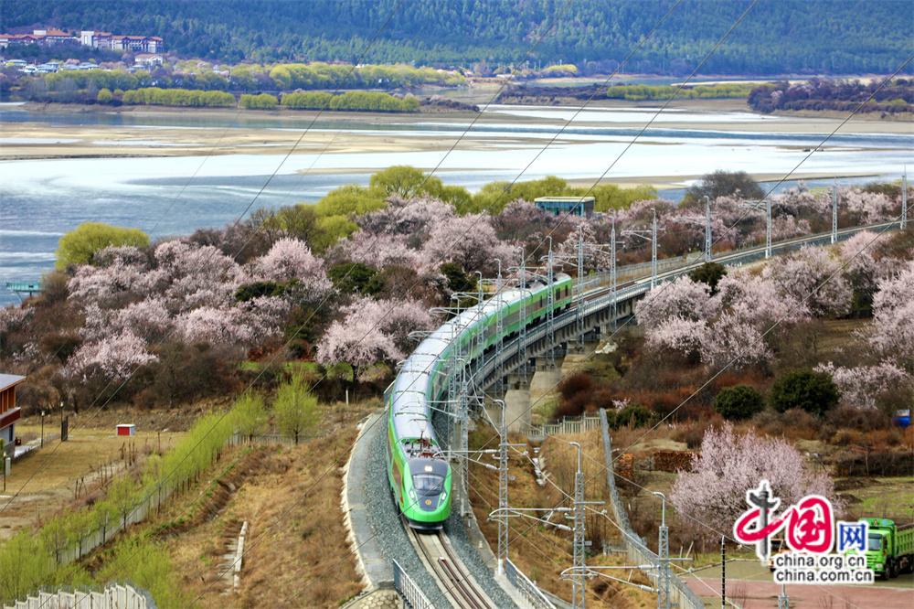每年3-4月份,拉林铁路沿线绵延百里的野生桃花林盛开,蓝天、白云、桃花、雪山、火车相互交织,形成了美不胜收的人间仙境。