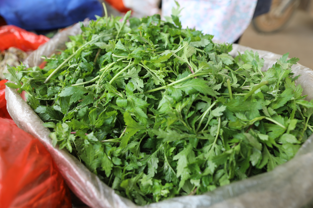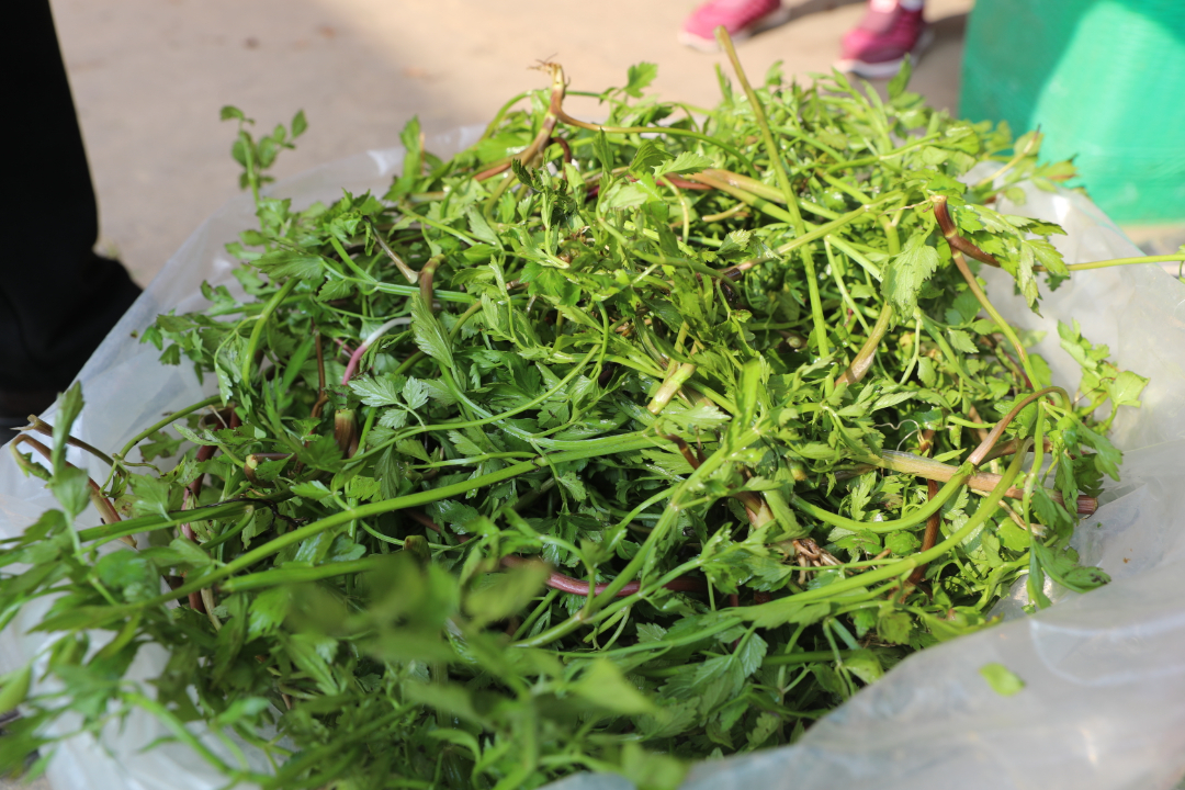 “我主要卖的是水芹菜,一公斤6块,家里人负责采,我负责卖。芹菜味道独特,营养价值也高,大家都很喜欢吃,基本上每天到中午就全部卖完了。”一大早,菜农张大爷忙得不可开交,摊位前买野菜的人络绎不绝,他既要招呼顾客,还要忙着称菜卖菜。