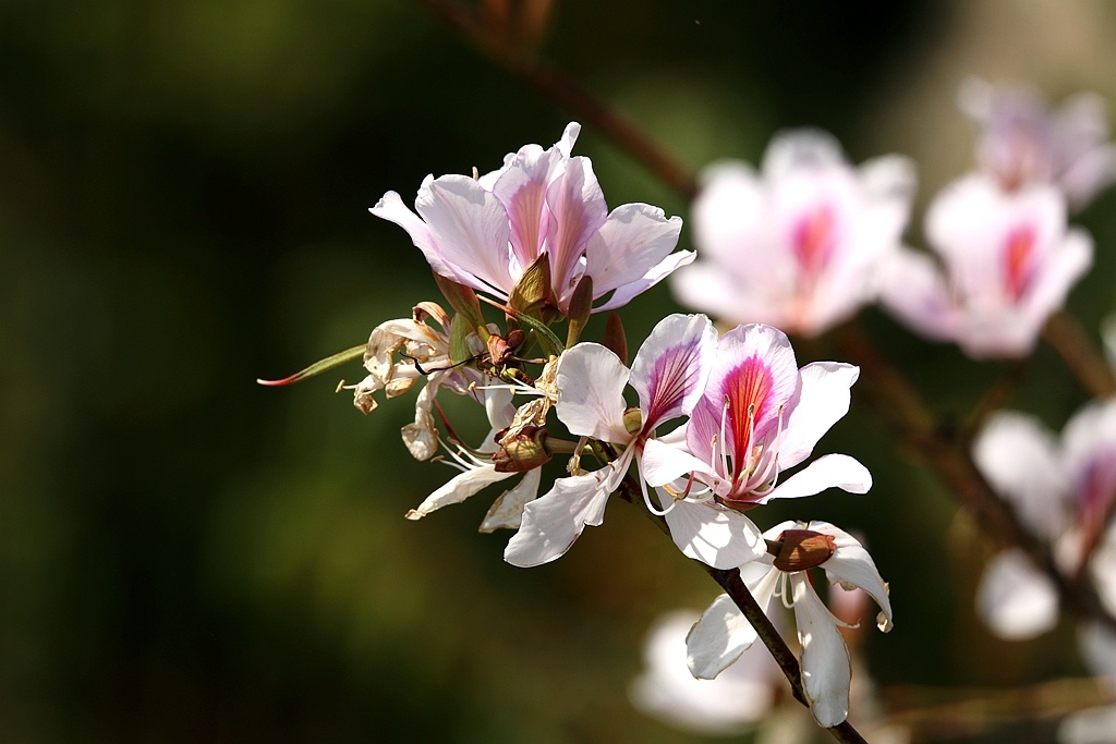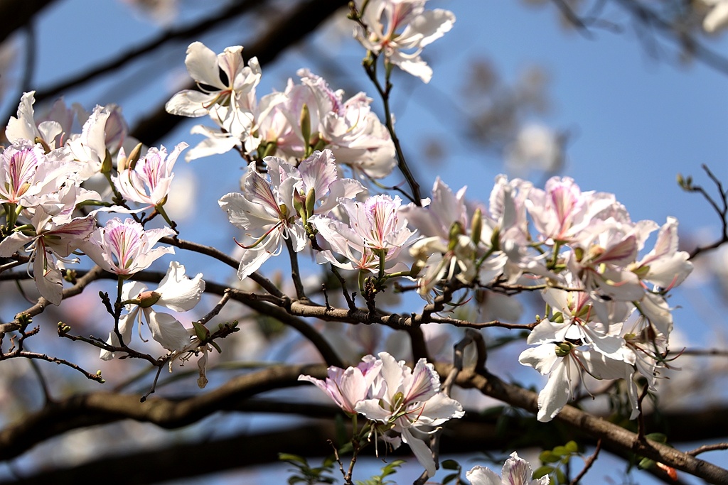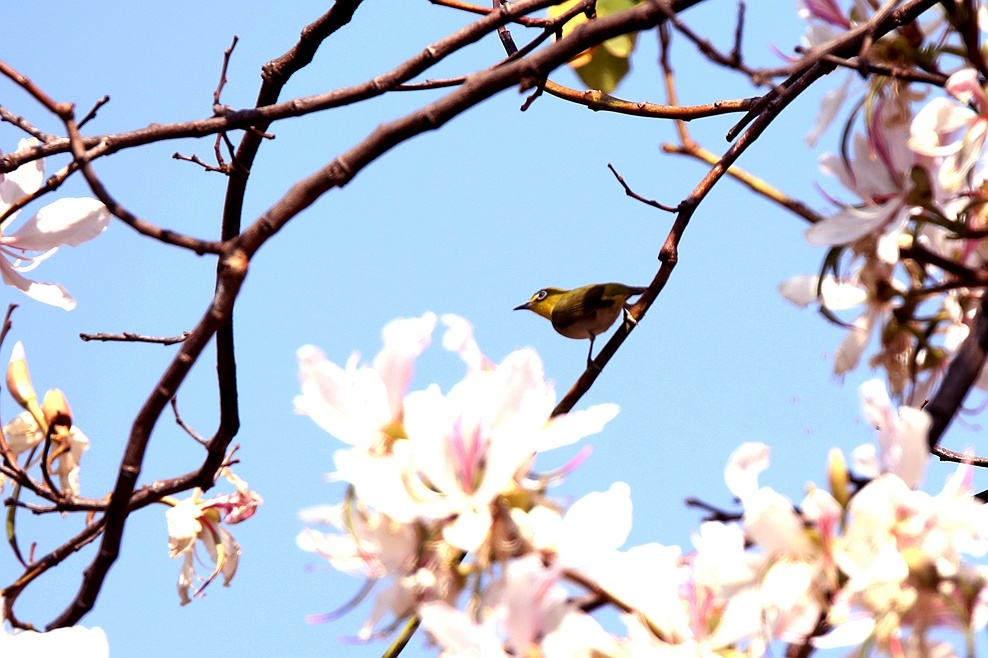 进入四月,丘北县普者黑国家5A级旅游景区内的八道哨乡白脸山村,山峰上一株株洋紫荆美丽绽放,远观近看,山花烂漫、清丽脱俗,鸟儿在花丛中跳跃舞动,展现出一幅幅美丽的大自然图景。(丘北县融媒体中心 马卫忠)