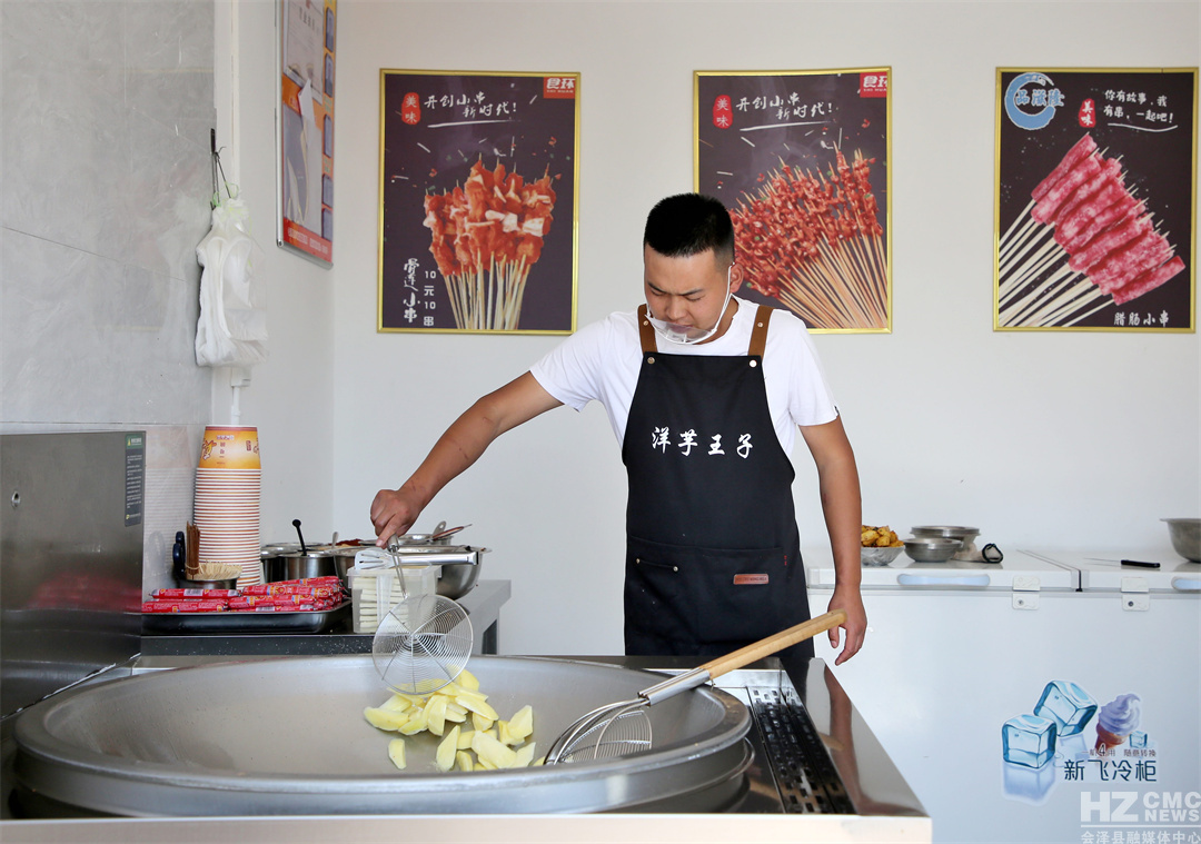 在文旅小镇的“党员之家”广场边,“洋芋王子”“冰粉铺子”“娜姑凉粉”等小吃店生意红火。冰粉铺子店主罗欢说:“周末客人比较多,年轻人和小孩都比较喜欢我做的冰粉,每天有400元左右的收入。”