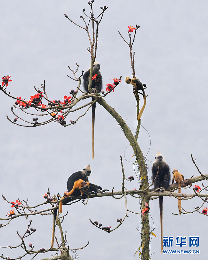 近年来,崇左市通过实施栖息地恢复工程、饮水工程、生态廊道建设工程等措施,目前白头叶猴种群数量已超过1400只。(摄影:张小宁)
