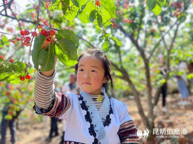 昆明信息港讯 记者段佳琪 近段时间,昆明市富民县赤鹫镇4000亩樱桃红遍山头,樱桃园内一片繁忙和喜悦。4月11日,记者从赤鹫镇2023年樱桃节新闻发布会上获悉,樱桃节期间,市民游客来到赤鹫,除了游园采摘樱桃,还可以参与汉服文化巡游,体验织布、碾米、做豆腐等农事活动,欣赏田园风光,享受一场沉浸式的生态乡村旅游。