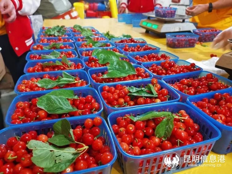 市民游客除了入园采摘可以吃到美味的樱桃,在昆明日新达、十荟团等生鲜超市也能买到赤鹫樱桃。据悉,近年来,为了推动樱桃产业健康发展,促进群众增收致富,赤鹫综合供销合作社通过主动接洽,拓宽销售渠道,帮助赤鹫农产品进超市、进社区、进单位、进市场。“过去一周,我们从果园收购了3吨的赤鹫樱桃发往昆明生鲜超市,我们的收购价格每公斤至少高于市场价三元,促进了农户增收。”赤鹫镇供销社主任陈建富介绍。