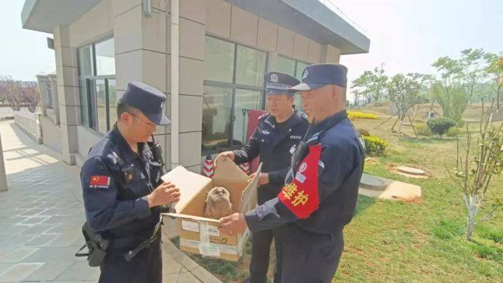 当民警赶到现场时,这名群众小心翼翼的抱着一个小纸箱。民警通过询问得知,这名群众早上上班时,发现小区门口路边上一只小猫头鹰在走路,不知道为什么,人走近了也未飞走。其考虑到猫头鹰是国家保护动物,他立马联系了派出所。而他生怕弄到小猫头鹰,所以抱着纸箱一直很小心。