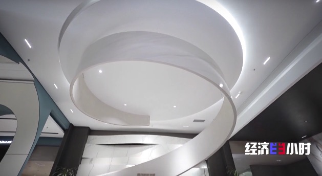 当看着一块最大弯曲度可达180°的曲面岩板,金兴淅表现出浓厚兴趣。