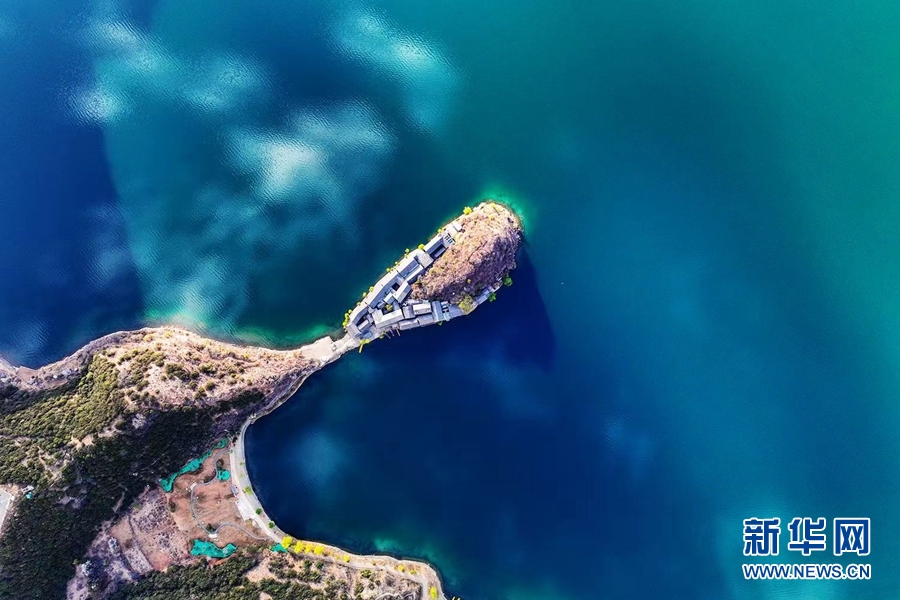 航拍视角下的泸沽湖里格半岛一带。新华网发 崔永江/摄