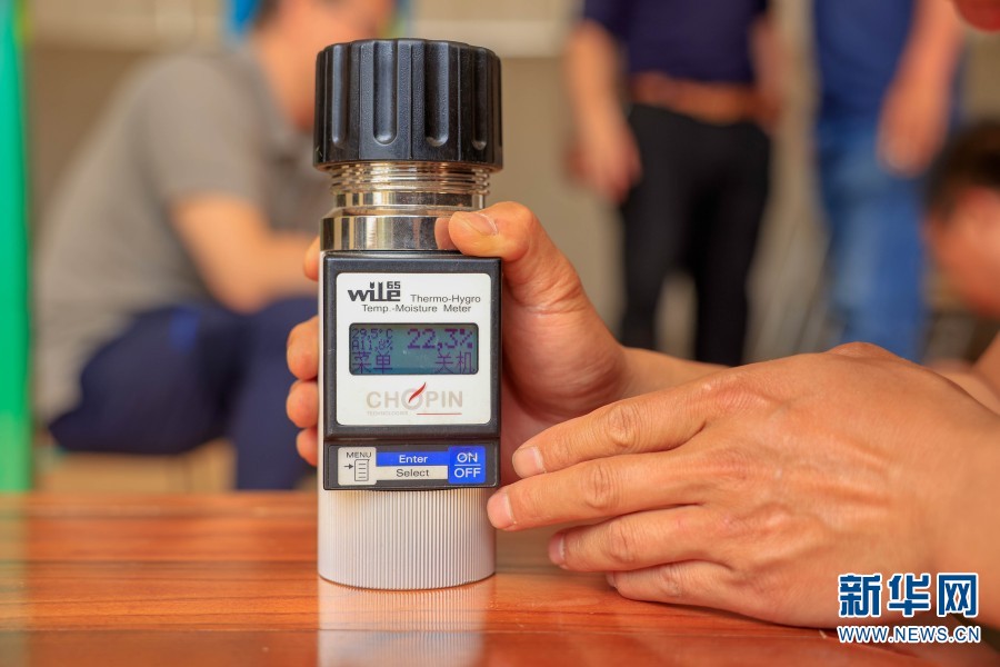专家测量含水量(4月21日 摄)。新华网 赵普凡 摄