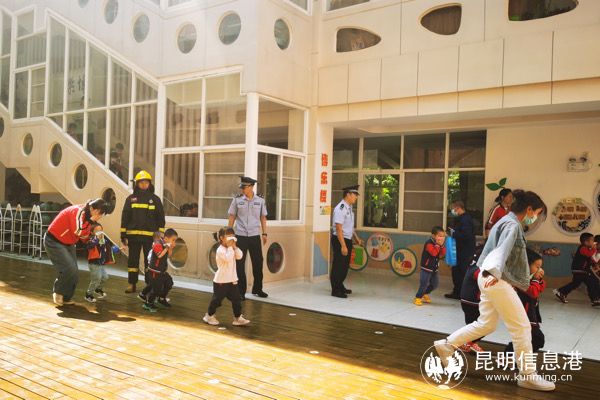 昆明信息港讯 记者合宇聪 4月24日上午,昆明市公安局五华分局王家桥派出所联合区消防救援大队、园博幼儿园共同开展应急疏散演练。