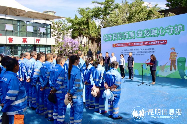 昆明信息港讯 记者昝娟娟 4月23日上午,以“城市因你而美 盘龙暖心守护”主题的致敬环卫工人“五一”主题慰问暨2023年夏送清凉活动在桃源广场举行,同时,“城市因你而美·新华伴你而行——新华保险关爱全国环卫工人大型公益行动”也连续六年走进云南昆明。
