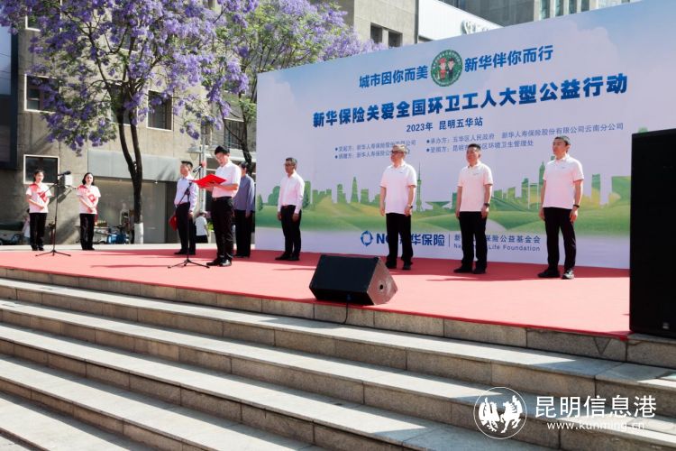 昆明信息港讯 记者昝娟娟 “同新聚力,卫爱出发”。4月25日上午,“城市因你而美·新华伴你而行——新华保险关爱全国环卫工人大型公益行动”昆明五华站捐赠仪式在昆明南屏步行街中心广场举行。新华保险向昆明市五华区2200余名环卫工人,捐赠每人10万元保额的人身意外伤害保险,捐赠总保额超2.2亿元。