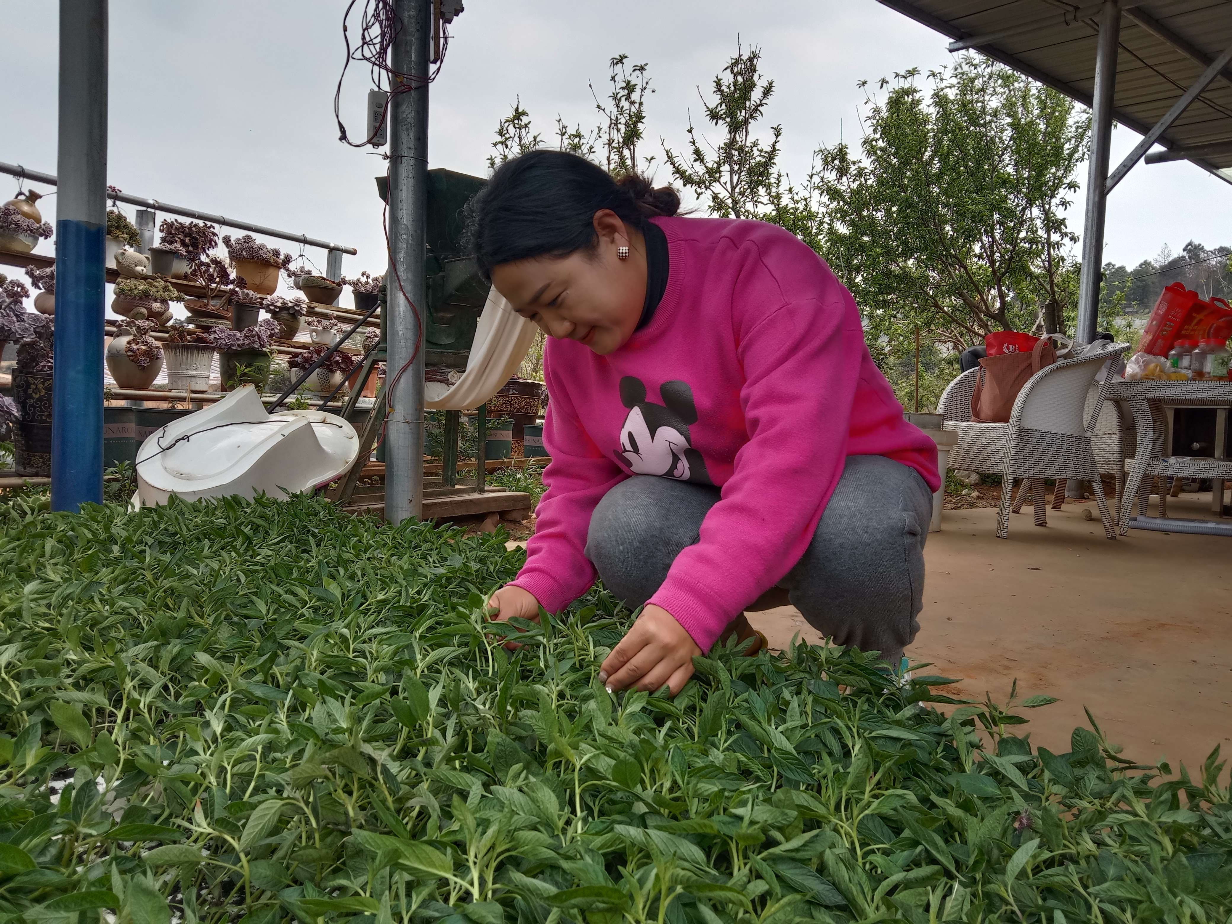 “我们是鱼都簸小组的,来人参果基地这里打工,我们正在把之前育好的人参果苗一株株地移栽到地里,先挖塘,然后插苗、施肥和浇水”。龙家琼说。