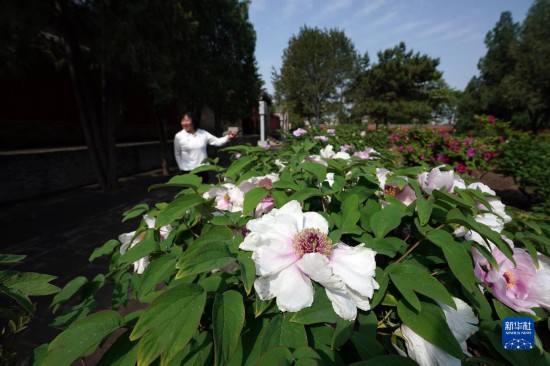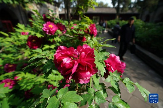 近日,山西太原双塔寺景区的数千株牡丹花竞相绽放,吸引游人前来观花赏景。