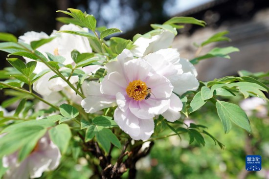 5月8日,在太原双塔寺景区,蜜蜂在花间采蜜。新华社记者詹彦/摄