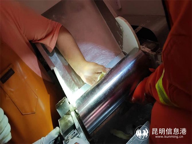 昆明信息港讯 5月1日10时33分,官渡区消防救援大队关上消防救援站接119指挥中心调令,称晓东新村一购物广场对面发生压面机卡手事件,急需救援。