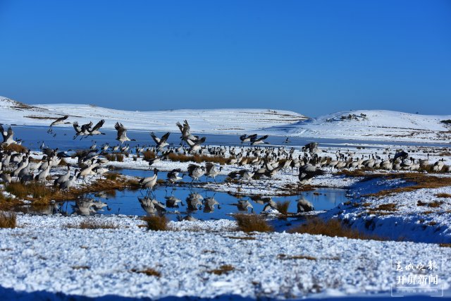 但在保护区成立之前,当地的黑颈鹤数量仅有200多只。黑颈鹤家族面临着气候恶劣、食物短缺等困难。