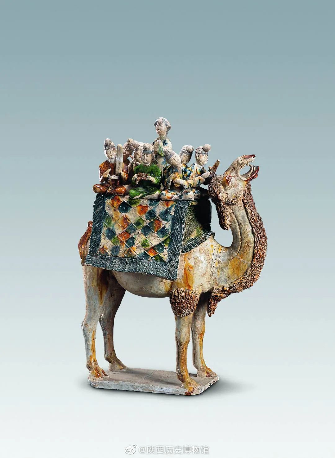 可谓唐三彩艺术作品中内容最精彩的一件,艺术化地再现了丝绸之路盛况一隅,一队队骆驼带来的不仅仅是珍宝、器皿和织物,还有鲜活的人,可能是印度僧侣、可能是中亚音乐家,也可能是东罗马工匠,他们,都有着一个关于长安的梦。