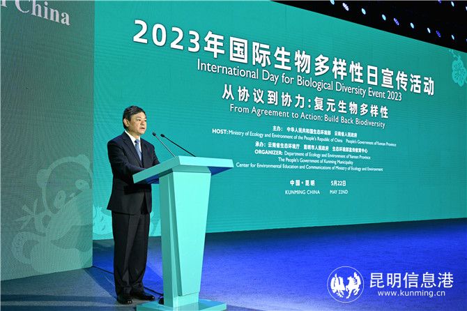 昆明信息港讯 记者江枫 5月22日,2023年国际生物多样性日全球主场活动在昆明举行。今年国际生物多样性日的主题是“从协议到协力:复元生物多样性”。《生物多样性公约》第十五次缔约方大会(COP15)主席、生态环境部部长黄润秋出席活动并致辞。云南省委书记王宁出席活动并致辞。