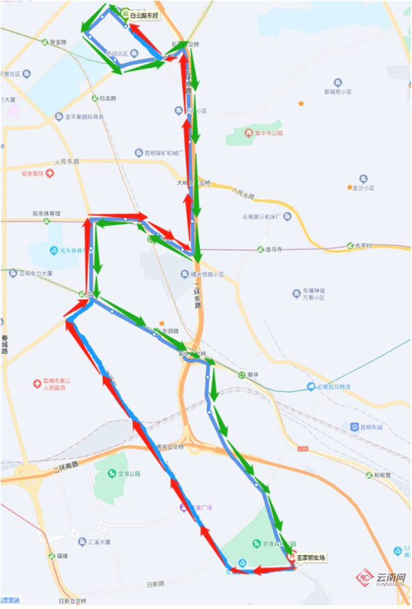 254路起终站为“巫家坝车场(雨龙路)(始发站)——白云路东段(终到站)”。调整后,254路起终站不变,去程按原线行驶至雨龙路,经雨龙路、日新路、民航路、环城南路、环城东路回原线行驶;回程不变。新增停靠“官渡区医院(去)、关上(日新路)(去)、关上(民航路)(去)、官渡广场(民航路)(去)、关兴路口(民航路)(去)、五里多村(去)、吴井路口(民航路)(去)、民航路(去)”等8个公交站;同时取消停靠“关通路口(雨龙路)(去)、雨龙路(去)、彩云北路口(雨龙路)(去)、菊花村(云中二院)(去)”等4个公交站。线路营运时间及票制票价不变。(云南网 记者段芃)
