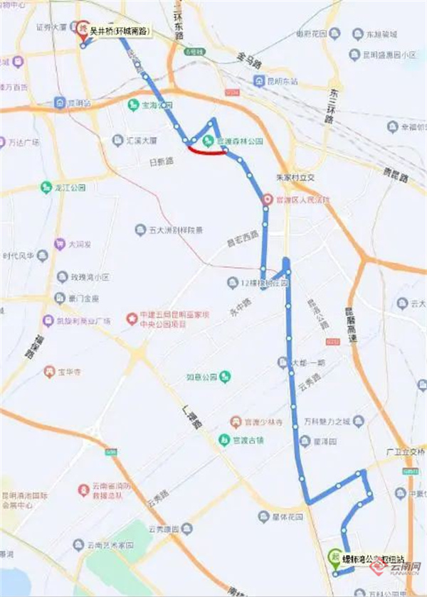 记者从昆明公交集团获悉,为提升公交线路运营效率,缓解雨龙路(关通路至关景路路段)道路拥堵的情况,结合公交营运及雨龙路片区道路通行实际,昆明公交对103路将进行优化调整。