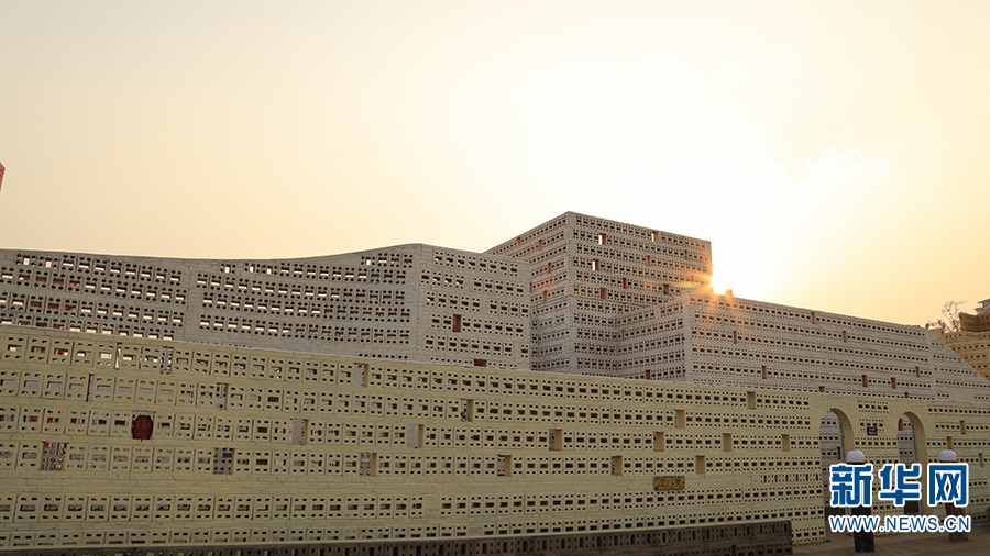 在蚁工坊,曾被废弃的老窑垃圾区如今摇身一变成为“网红打卡地”,艺术家罗旭用本地烧制的白色、红色、蓝色、黄色等具有明亮色调的空心砖,设计出集陶艺研发生产及体验培训、艺术衍生品研发和展示销售等文旅产业微综合体。湖面与树林的掩映下,建水县自然风光和蚁工坊的人文景观交相辉映,一块块空心砖垒起的“浪漫空间”吸引游客驻足拍照。