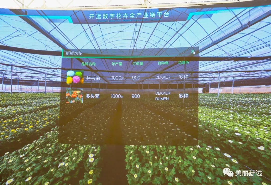 园区还依托数字花卉全产业链平台,通过运用5G、云计算、AI等技术,构建连接政府、企业、农户、市场的数字花卉产业服务体系,实现指导种植、降本提效、产研融合、助农增收四大功能。