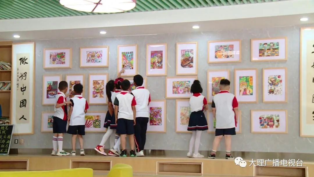 当天,满江小学还举办了美食节、书画展等活动。在学校的走廊、过道,贴满了学生们的画作,大家以美食为主题,在五彩缤纷的色彩中尽情展现自己心中的奇妙想象和对生活的美好期待。此外,还展出了学校老师的板书作品,让同学们在潜移默化中接受传统文化的熏陶。