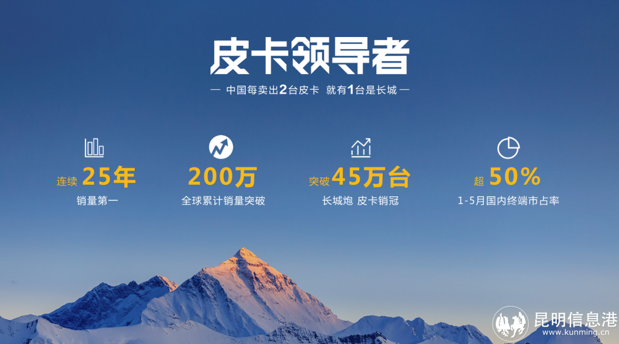作为皮卡领导者,长城皮卡连续25年销量第一、全球累计销量突破200万,2023年1-5月市场占有率突破50%;长城炮上市三年多,累计33个月销量过万,稳居国内皮卡市场第一,成为首个突破45万台的中国高端皮卡品牌。