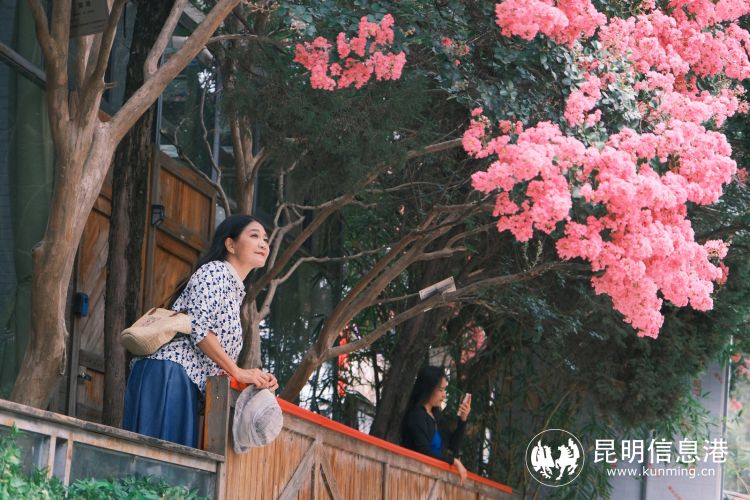 烈日炎炎下,紫薇花在文创园区里恣意绽放,满树繁花正应了“盛夏绿遮眼,此花红满堂”的赞语。目前,园区内有200多棵紫薇花,颜色艳丽,主要有粉色、玫红、白色等。其中,最受欢迎的是有两层楼高的“紫薇花瀑布”,近段时间以来,每天能吸引大量市民游客来打卡拍照。市民周先生说:“最近朋友圈看到好多朋友发昆明紫薇花美图,非常惹人心动,决定来看一看。这么高的紫薇花瀑布,的确太出片了!”
