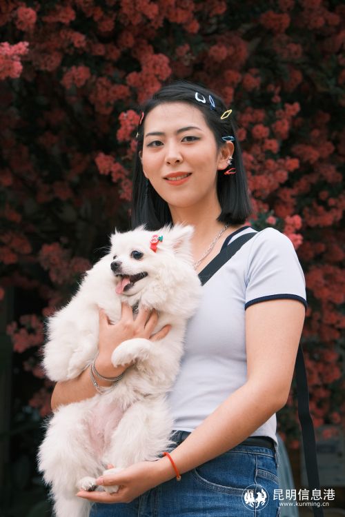 紫薇花吸引了游客驻足,就连萌宠狗狗都被主人安排一起拍照留念
