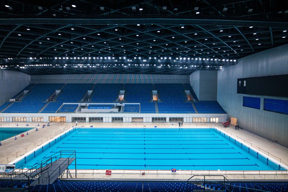 2021年4月12日拍摄的杭州奥体中心游泳馆内景。新华社记者 江汉 摄