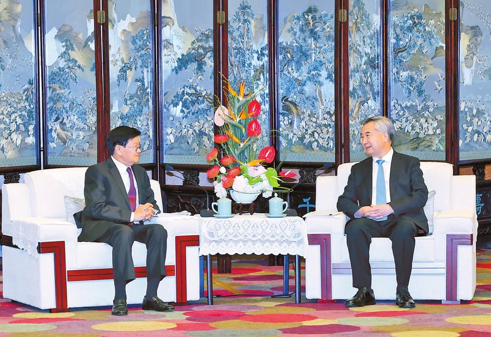 6月15日,受中共中央总书记、国家主席习近平委托,中共中央政治局常委、中央纪委书记李希代表中共中央在昆明看望并会见老挝人革党中央总书记、国家主席通伦。新华社记者 姚大伟 摄