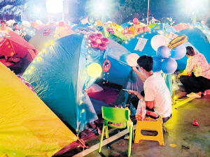 昆明信息港讯(昆明日报 记者杨艳萍摄影) 挂上小灯、铺好垫子、支起帐篷……近日,在官渡区晓东小学里,同学们开启了一趟浪漫、独特的阅读之旅——星空帐篷阅读会。