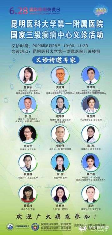 昆明信息港讯 记者孙红亮 记者获悉,6月28日,昆明医科大学第一附属医院综合癫痫国家三级癫痫中心联合该院神经内科、神经外科、儿科、医科学精神科、医学影像科等学科10多名临床经验丰富的科室专家教授,将在西昌路院区进行大型义诊活动,当天上午10时正式开始。