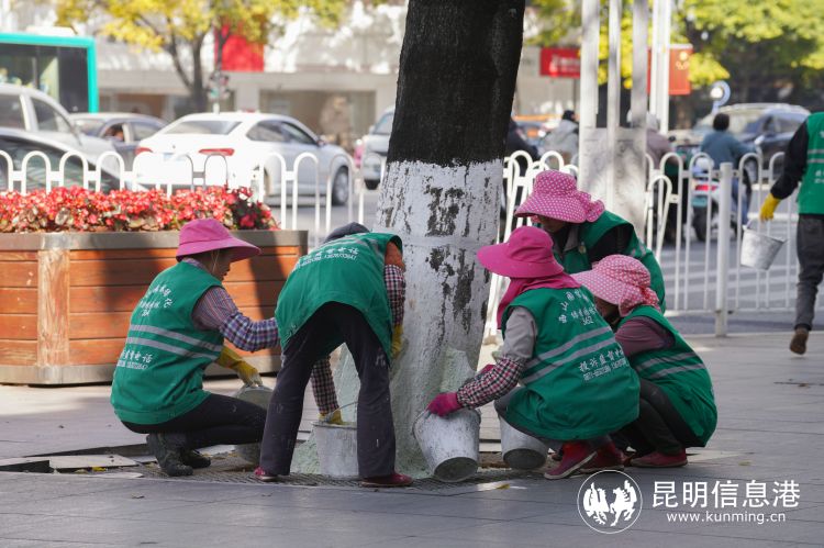 此外,为了避免正午高温时土壤突然受到冷水刺激,影响作物生长,园林工人们还需要在白天的工作结束后,夜间加班进行浇水。灯火通明的夜晚,人流稀少的街道,喷洒的水雾与工人的汗珠在城市夜间的霓虹中闪烁,当车水马龙归于宁静,只有夜里吹过的凉风和湿润的泥土气息伴着这群忙碌的园林人一同前行。正是这群城市里的园林工人们任劳任怨、夜以继日地坚守,才使得昆明这座城市依然绿色盎然。