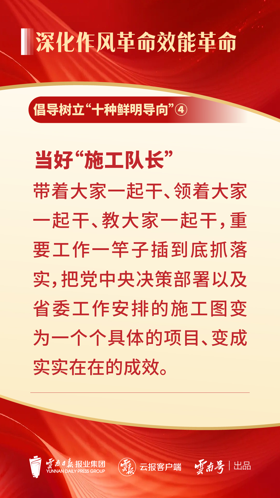 6月30日,全省深化作风革命效能革命工作会议在昆明举行。省委书记王宁强调,要坚持典型引路,激励担当作为,在主题教育中进一步深化作风革命、效能革命,大力倡导和树立“十种鲜明导向”,为云南高质量跨越式发展提供坚强有力的作风保障、能力支撑。