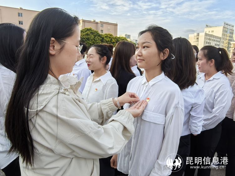 国旗升起,强国有我。在云南省经济管理学院运动场,“大党委”成员单位90余名党员及学校700余名青年学生,在响亮的国歌声中庄严肃穆地进行了升旗仪式,大家齐唱国歌,行注目礼,随着国旗的冉冉升起,大家心潮彭拜。随后“大党委”成员单位里19名新党员在党旗的见证下佩戴党徽,并和在场的全体党员一起重温了入党誓词,青年党员们表示“我心向党、永跟党走、强国有我”。