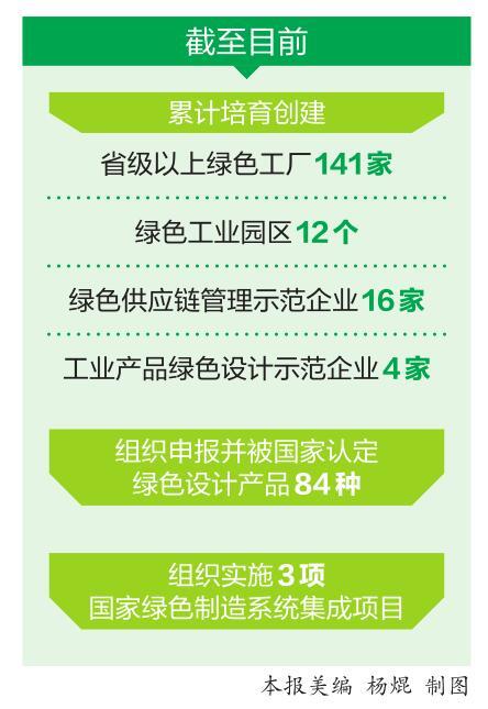 截至目前,我省已累计培育创建省级以上绿色工厂141家(其中国家级84家)、绿色工业园区12个(其中国家级9个)、绿色供应链管理示范企业16家(其中国家级6家)、工业产品绿色设计示范企业4家(其中国家级3家),组织申报并被国家认定绿色设计产品84种,成功组织实施了3项国家绿色制造系统集成项目,全省工业绿色发展初见成效。