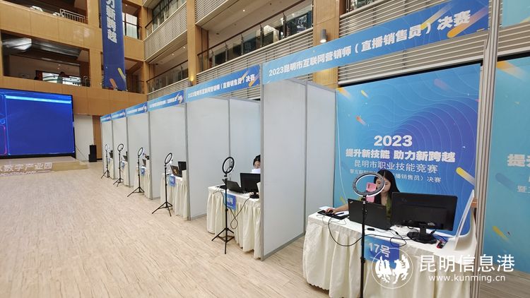 昆明信息港讯 记者龙泉积“直播间的粉丝宝宝们,大家赶紧点一波关注,超值福利马上给到大家……”“倒计时3、2、1,上链接!”环形补光灯前,主播们对着直播设备卖力地“吆喝”着,这里不是网红直播间,而是7月2日举行的2023年昆明市互联网营销师(直播销售员)职业技能竞赛总决赛的现场。